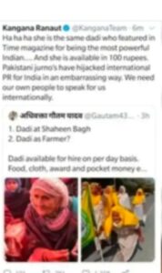 जे मामला 2021मैं किसान आंदोलन के दौरान एक बजुर्ग महिला किसान मोहिंदर कौर को 100 रुपये में धरना देने वाली बताते हुए ट्वीट किया था